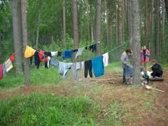 Пользуясь тем, что дождь стих, ставимся и готовим еду. Сушимся без особого успеха, зато никто не ушел без сожженной обуви.